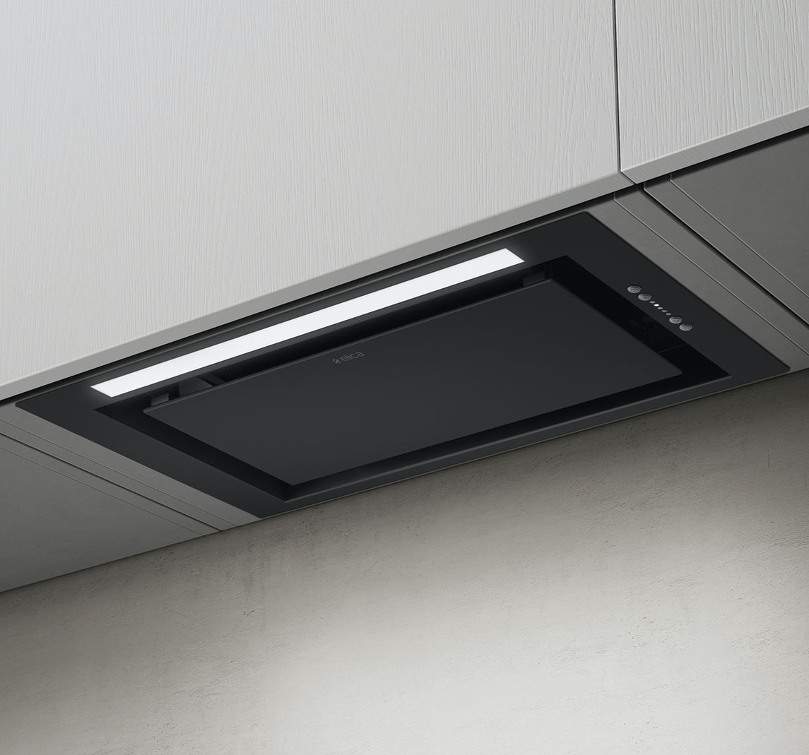 Встраиваемая вытяжка шириной 72 см LANE MBL/A/72 для установки в мебельный шкаф шириной не менее 80 см с декоративной панелью, скрывающей жировой фильтр. С производительностью 1050 м3/час - достаточно для помещения не более 25 кв.метров