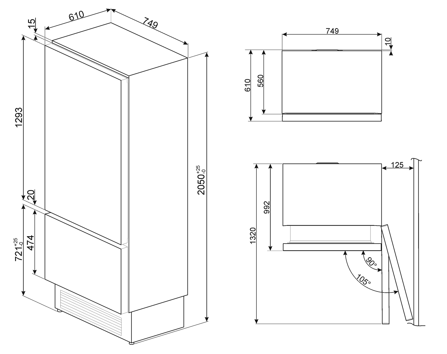 - размеры (ВхШхГ): 2050 х 749 х 610 мм