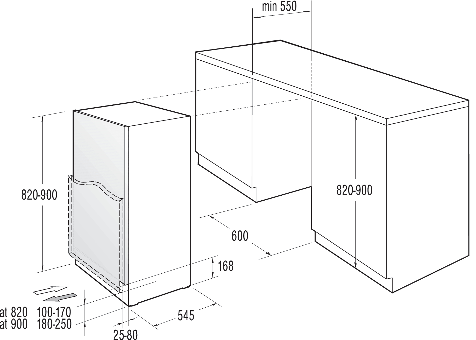 После транспортировки, перед подключением, следует оставить прибор в вертикальном положении в течение 2 часов. Установка прибора следует производить в вентилируемые ниши, с учетом указанных расстояний до ближайших поверхностей. Фасад может навешиваться путем жесткого крепления непосредственно на дверцу прибора или при помощи направляющих. Тип навешивания фасада необходимо уточнить перед приобретением. Дверь холодильника может перенавешиваться и открываться в правую или левую сторону. Рекомендуется устанавливать холодильник / морозильник на удалении от нагревающихся приборов, чтобы сократить частоту включения компрессора и продлить срок службы прибора.