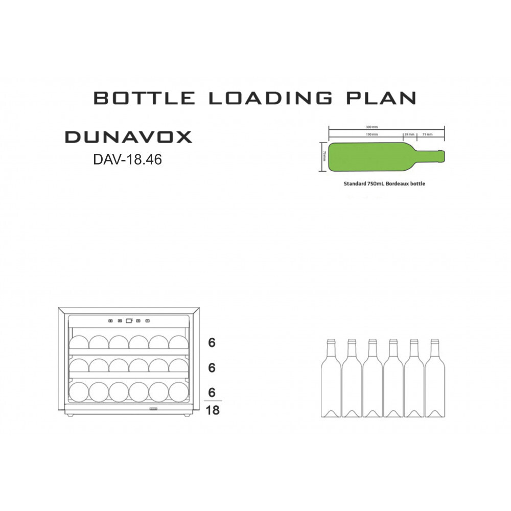Бутылки должны храниться в горизонтальном положении, чтобы обеспечить контакт пробки с вином внутри и исключить ее высыхание. Винные шкафы Dunavox оснащени крепкими деревянными и металлическими полками, позволяющими бутылкам вина спокойно охлаждаться.