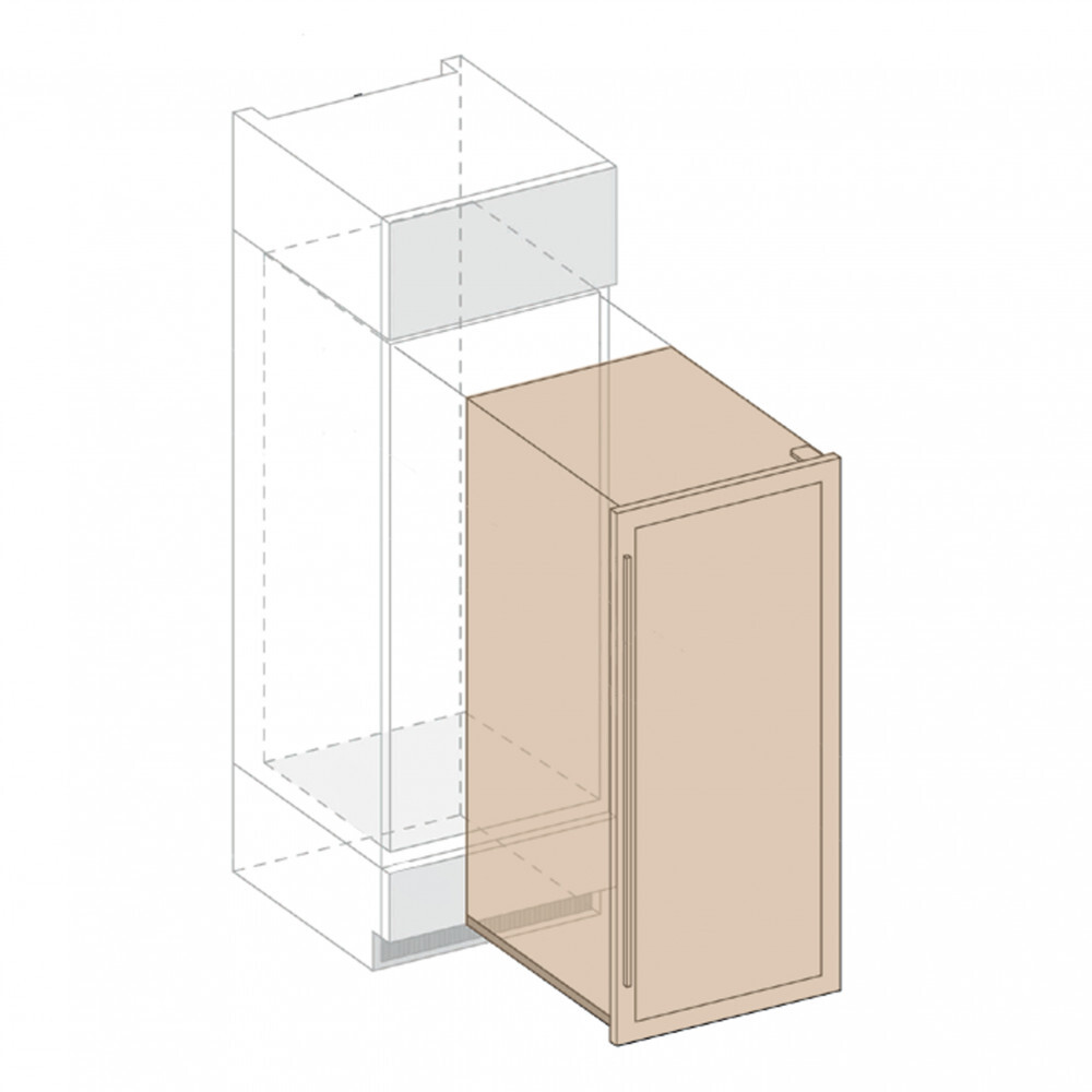 Двери не имеют ручек, а легкого нажатия на верхнюю чатсь двери достаточно, чтобы активировать внутренний датчик, который автоматически открывает дверь - в этом случае винный шкаф идеально сочетается со всеми предметами кухонной мебели без ручек в современном дизайне.