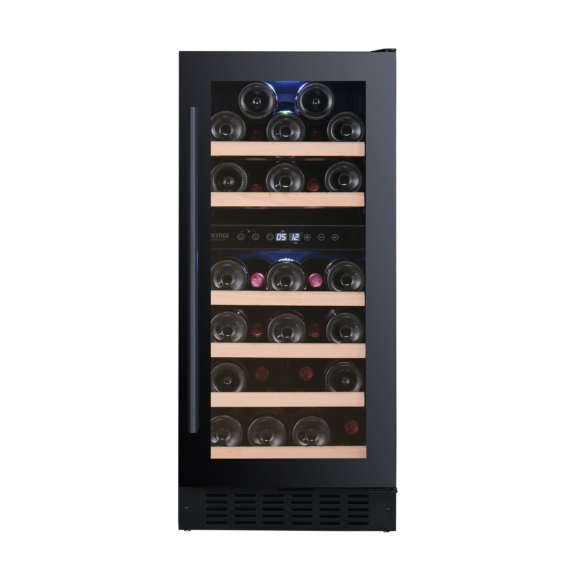 Винный холодильник Temptech PRESQ38DB в отделке из черного стекла, с двумя температурными зонами, высотой 85,3 см