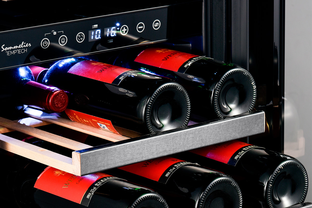 Серия винных шкафов Sommelier by Temptech разработана в сотрудничестве с Elkjøp / Elgiganten i the Nordics, крупной розничной сетью Северной Европы. Серия Sommelier отличается дверцей из черного стекла, встроенными ручками, а выдвижные деревянные полки декорированы накладками чёрного цвета. Холодильник для вина Temptech SOMQ38DRB может быть встроен в кухню под столешницу или установлен как отдельностоящий.