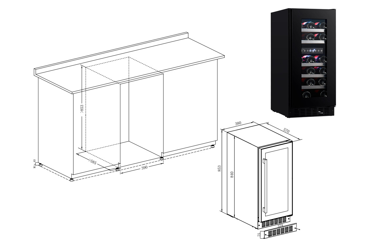 - Две температурые зона (5-12, 12-20°C), вместимость до 32 винных бутылок.