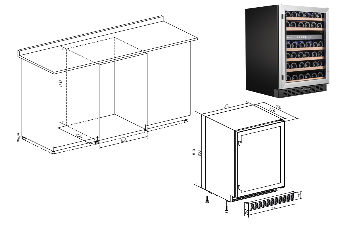 Винный шкаф имеет изящный скандинавский дизайн с четкими линиями, предназначенный для бесшовной интеграции в кухню.