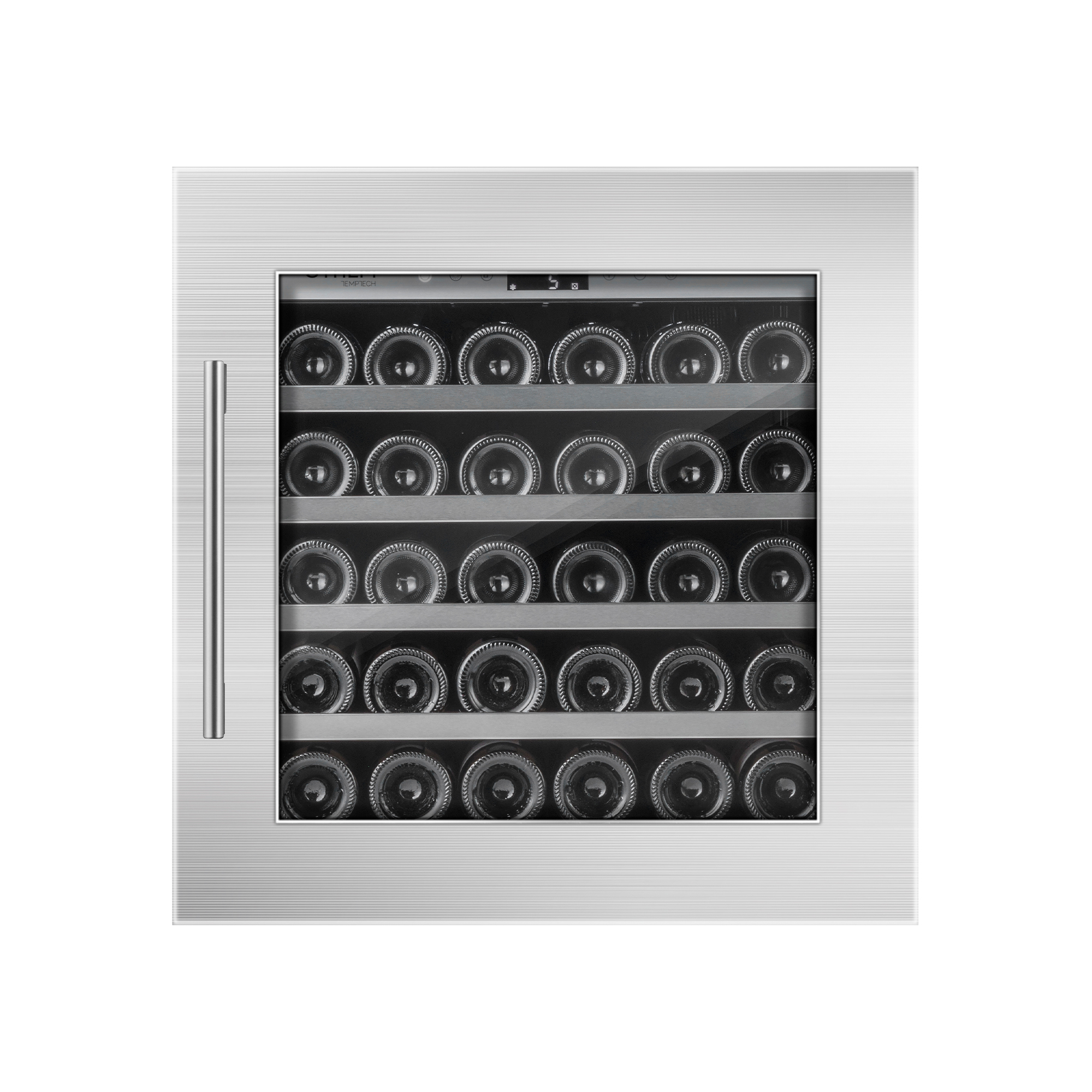 Коллекция вин надежно укрыта за стеклянной дверцей, которая защищает напитки от разрушительного воздействия ультрафиолетовых лучей и тепла, что позволяет избежать неприятных последствий для вашего вина. Этот винный шкаф оборудован вентиляторами, которые обеспечивают равномерную циркуляцию воздуха, поддерживая постоянную и стабильную температуру внутри. Конденсационная вода, образующаяся в шкафу, повторно используется, что помогает поддерживать идеальный уровень влажности. Чистоту и свежесть воздуха гарантирует фильтр с активным углем, способствующий качеству хранения ваших вин.