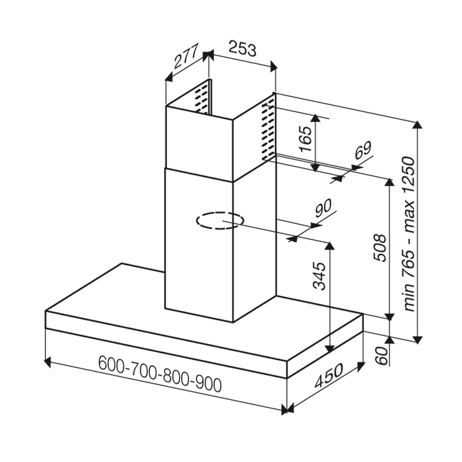 - Минимальное расстояние между опорной поверхностью конфорки газовой плиты и нижней точки вытяжки должно быть 65 см, если плита электрическая - минимальное расстояние должно быть не менее 55 см.