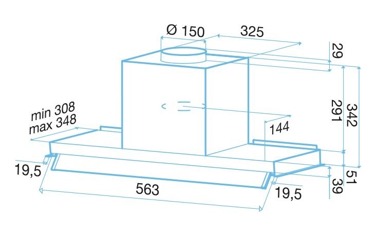 Минимальное расстояние от нижнего края вытяжки до поверхности составляет: газовая поверхность – 52 см, электрическая (блиновая, стеклокерамическая или индукционная) – 40 см.