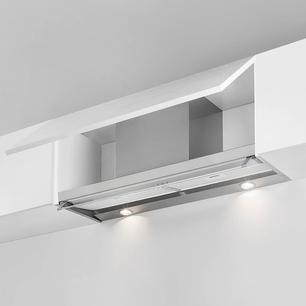 Встраиваемая вытяжка Best GHOST 90 выполнена в отделке из благородной полированной нержавеющей стали со стеклянным откидным козырьком и подойдет для установки в навесной шкаф шириной 90 и более см. Эта модель очень стильная и мощная (800 м3/ч), а благодаря своей конструкции, позволяет использовать шкаф в который она встроена, по прямому назначению (вы можете хранить в этом шкафу крупы, специи и пр.)