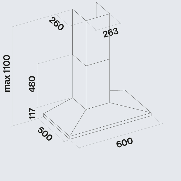 - вы можете установить эту вытяжку в мебельный шкаф шириной 60 и более см.