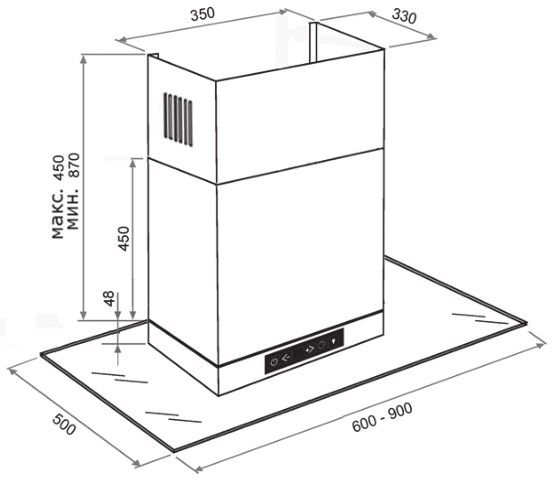 Следует учитывать, что размеры вытяжки должны соответствовать размерам рабочей поверхности, над которой она устанавливается. Вытяжка будет работать эффективно лишь при условии, что ее воздухоприемный зонт полностью закрывает плоскость варочной поверхности. Вытяжка, размером 60 сантиметров это идеальное решение для варочных поверхностей шириной 60 и 45 см.