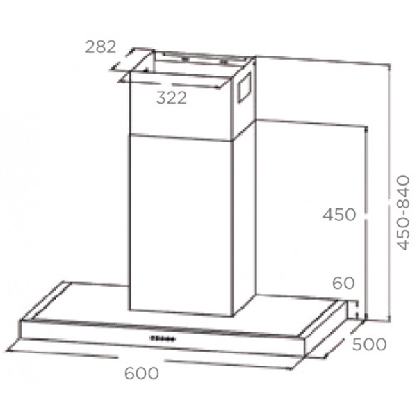 Т-образная вытяжка Midea MH60C775X шириной 60 см в отделке из нерж.стали и черного стекла
